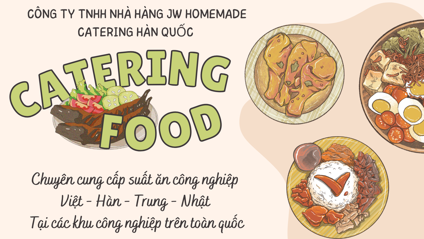 Công ty TNHH Nhà Hàng JW HOMEMADE CATERING HÀN QUỐC là công ty 100% vốn đầu tư Hàn Quốc. Công ty chuyên cung cấp suất ăn công nghiệp, hệ thống nhà hàng Hàn Quốc, hệ thống shop hoa Hàn Quốc.