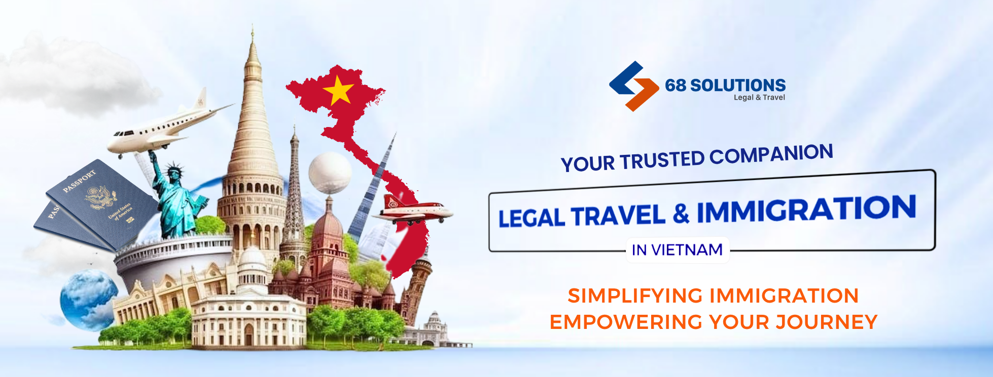 Founded in 2019, 68SOLUTIONS is a consultancy firm specializing in immigration services for both Vietnamese citizens and foreign nationals. Over the past six years, we have successfully assisted more than 500,000 clients, achieving a success rate of 99.8% and facilitating connections with over 160 countries and territories worldwide through streamlined procedures and competitive pricing.