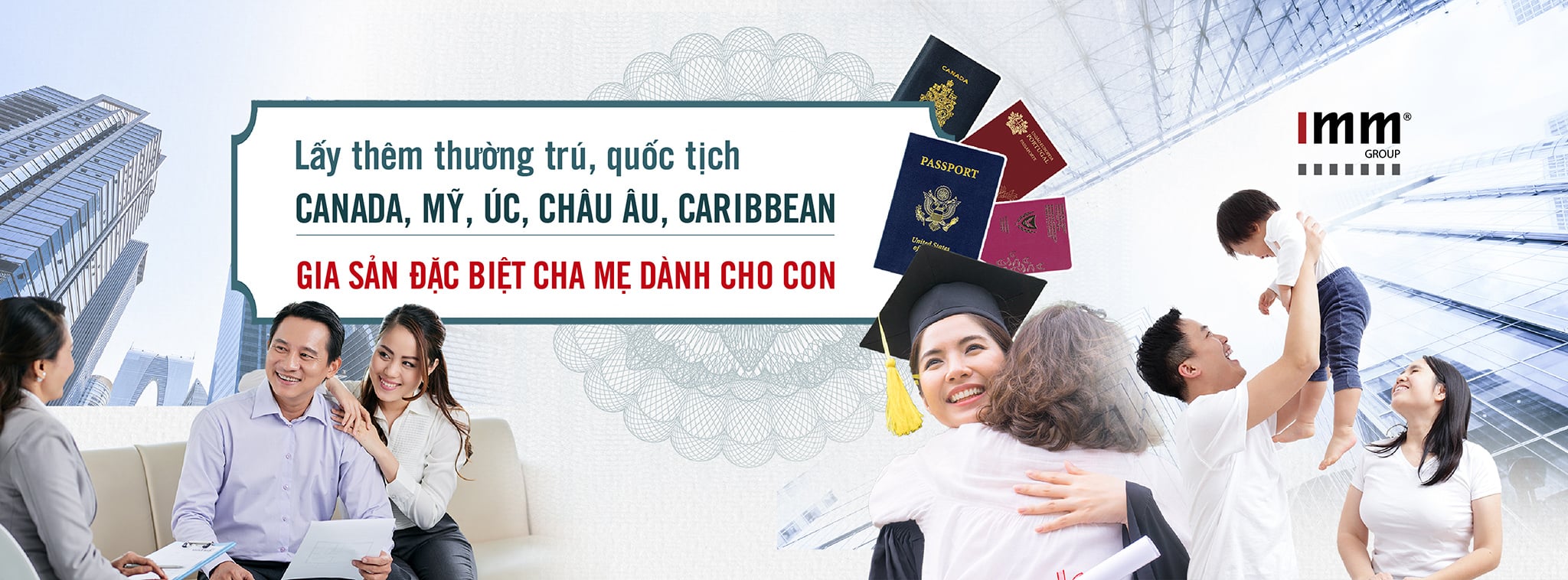Được thành lập từ tháng 01/2005, IMM Group là tập đoàn Việt Nam tiên phong trong lĩnh vực tư vấn đầu tư lấy thêm quốc tịch, thẻ thường trú tại các quốc gia phát triển (Mỹ, Úc, Canada, châu Âu, Caribbean, Turkey). Chúng tôi cũng là đơn vị Việt Nam đầu tiên hoàn chỉnh gói dịch vụ tư vấn đầu tư nước ngoài và quản lý gia sản, nâng tầm doanh nhân, nhà đầu tư, là cầu nối để các doanh nghiệp Việt Nam vươn tầm quốc tế.