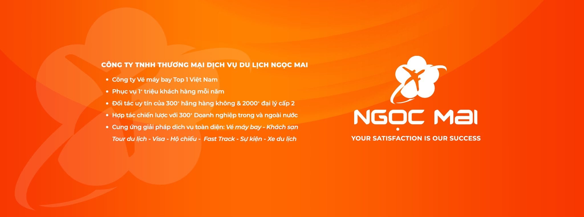 Nhận thức được tầm quan trọng này, Ngọc Mai Travel đã luôn chú trọng việc xây dựng mối quan hệ dựa trên những đối tác vững chắc và dịch vụ khách hàng chuyên nghiệp, mang đến cho khách hàng sự hài lòng khi sử dụng dịch vụ do Công ty chúng tôi đang cung cấp.