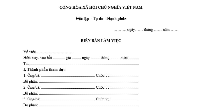 Tuy nhiên hiện hành chưa có quy định pháp luật nào quy định về Mẫu biên bản làm việc.