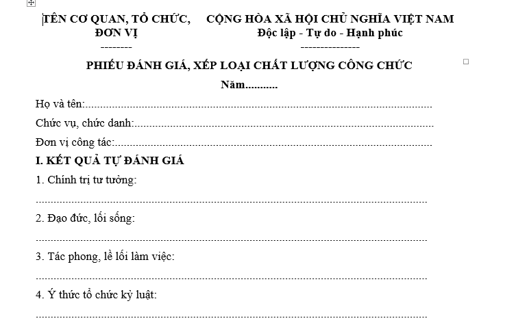 | Tải về | Mẫu Phiếu đánh giá xếp loại chất lượng công chức năm 2025 |