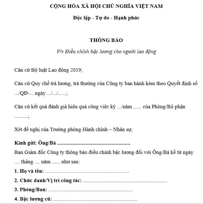 Mẫu Thông báo điều chỉnh bậc lương nhân viên mới nhất năm 2026 ra sao?