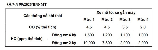 Cụ thể, ban hành kèm theo Thông tư này Quy chuẩn kỹ thuật quốc gia về khí thải xe mô tô, xe gắn máy tham gia giao thông đường bộ (QCVN 99:2025/BNNMT).