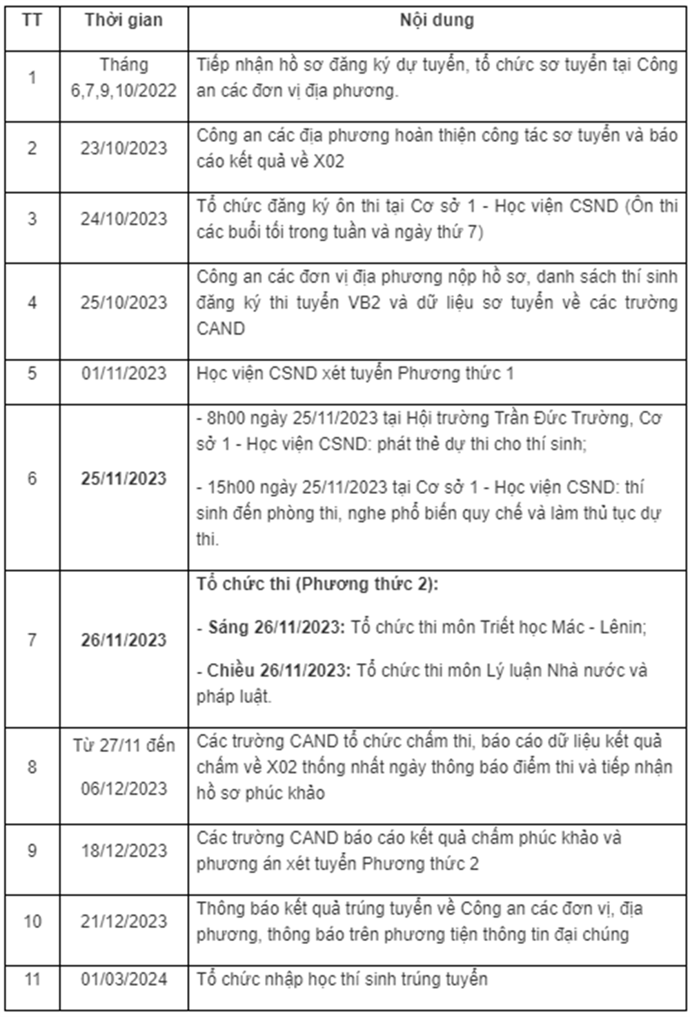 7. Kế hoạch, lịch tuyển sinh Học viện Cảnh sát nhân dân